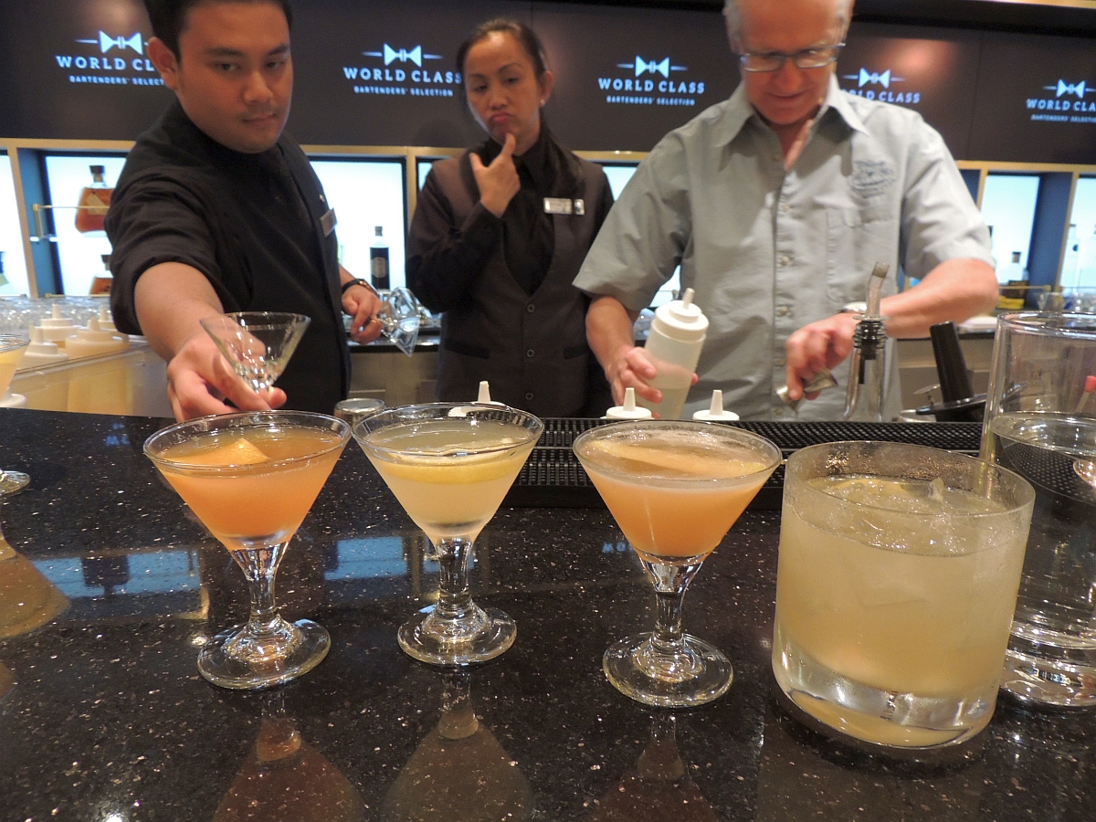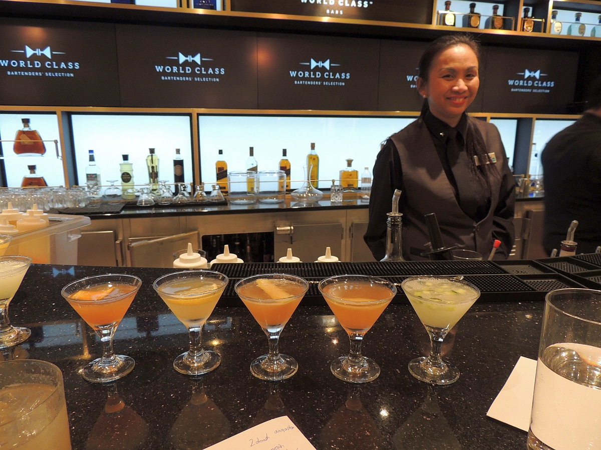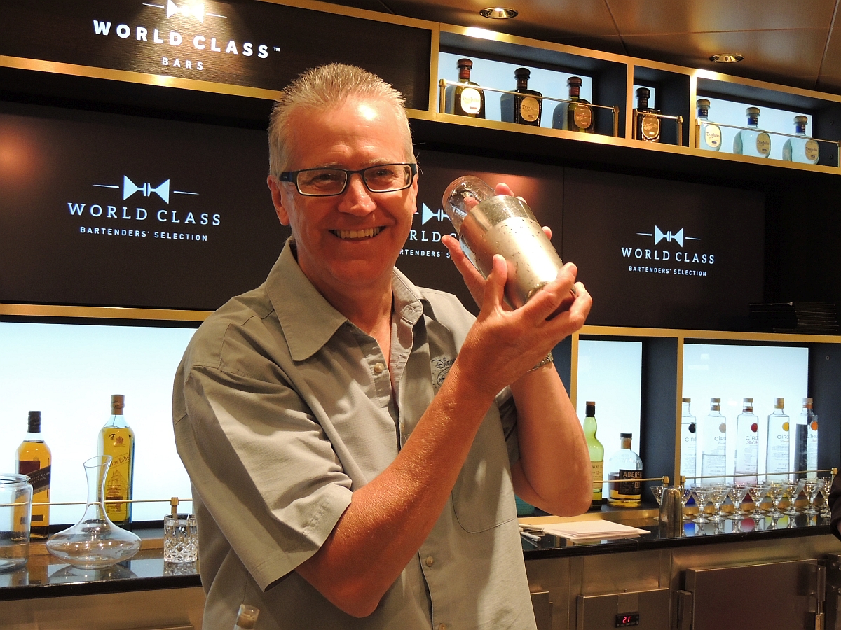 We have signed up for the mixology class at the World Class Bar at 2.00pm, but when we arrive it appears there is a mix up in the start time (how appropriate) as it is now starting at 3.00pm. Thats no problem as it gives us time to see John Mankas last presentation of the cruise in Celebrity Central. Another fascinating 45 minutes as he talks to us about ways to slow down time, basically enjoying life to the full and taking every opportunity to experience new and exciting things.