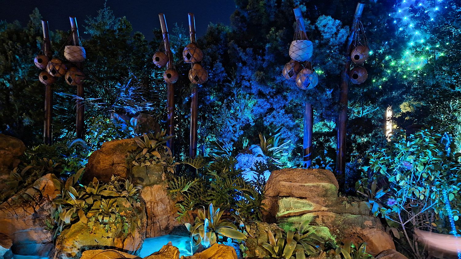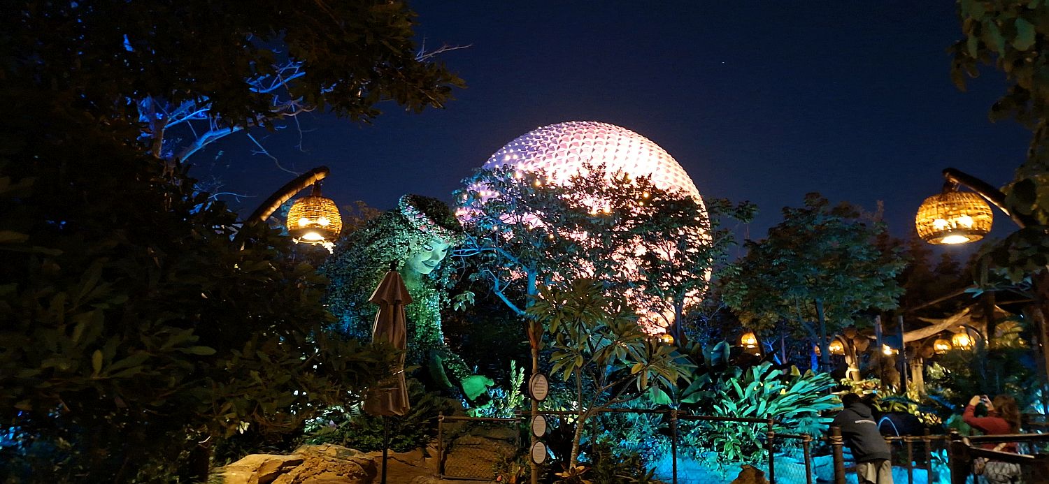 It's extra magic hours tonight for those staying on Disney property, so we have until 11.00 pm to wander round. We go to the new Moana walkthrough area, which is really very pretty at night and also very quiet.