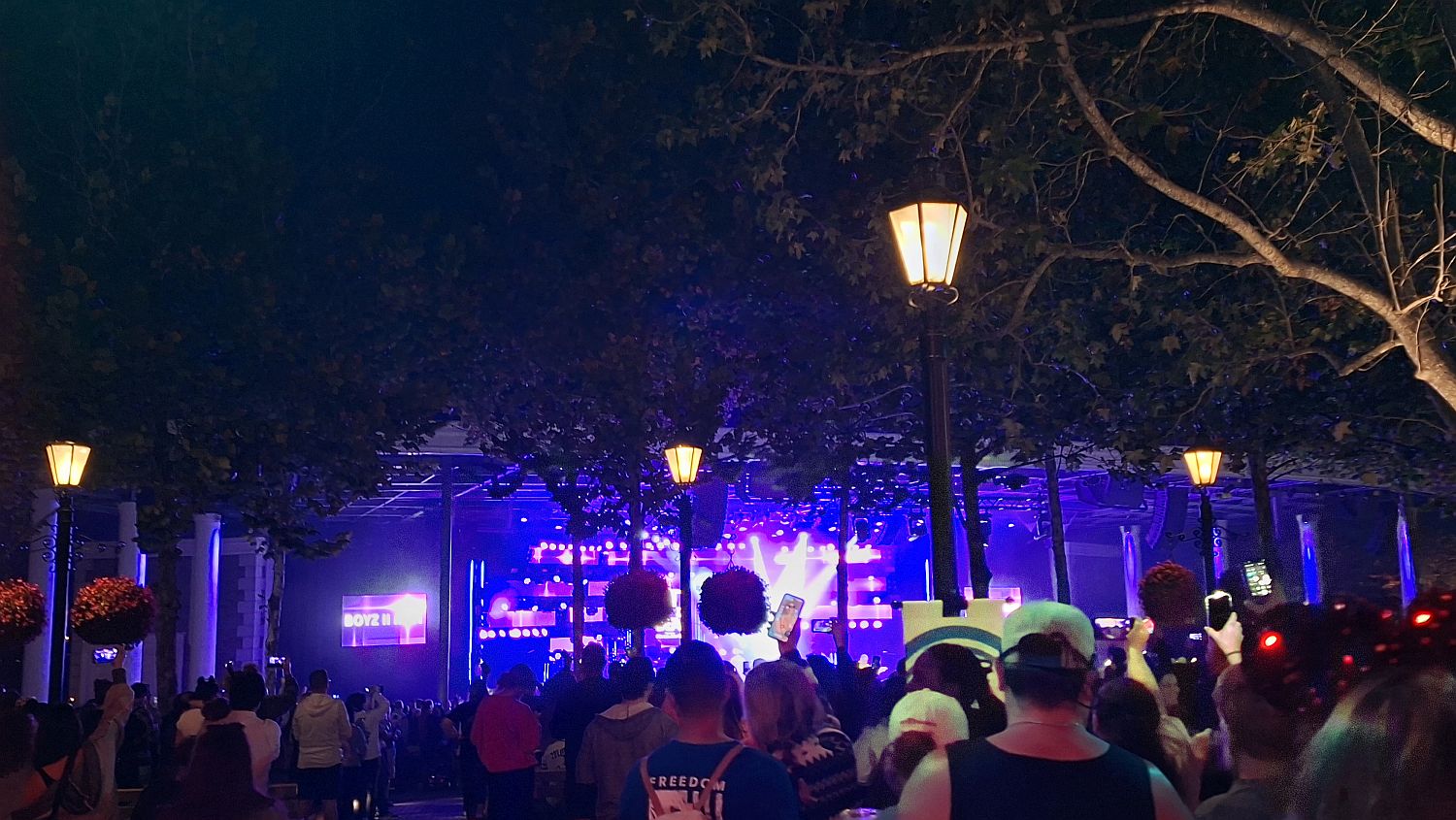 Walking past the stage by the American pavillion we come across this. Apparantly it's Boyz to Men. They seem to be very popular.
