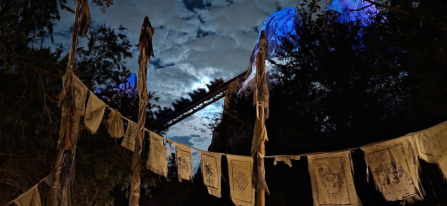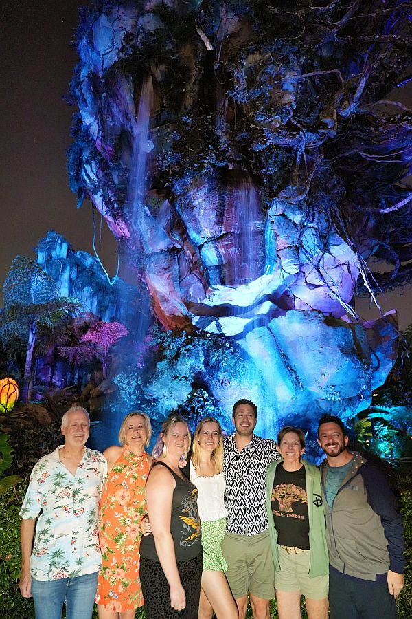 Over to Pandora where we ride River Journey and then get to do Flights of Passage twice. That's the advantage of extra magic hours. There is a really lovely young CM at Flights of Passage. As the restraint holds you in place she walks along the line checking you're secure while saying 'Push, pull, push pull' in a singalong lilt. We're all laughing and can't help but repeat it for the next couple of hours. Just one of those little things that you'll never forget. While we are waiting in the queue for FOP the CM mentioned that there was a rocket launch just about to go off and sure enough we look up to the sky and see the trail in the night sky. Another magical unexpected moment.