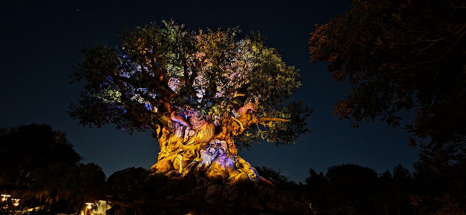 Back to Everest but it's still down, so we watch the tree show again, which is different this time. We've had a lovely evening in the Animal Kingdom, I think it's probably the most beautiful park at night. Leave at 10.00 pm and get the bus back to The Boardwalk.