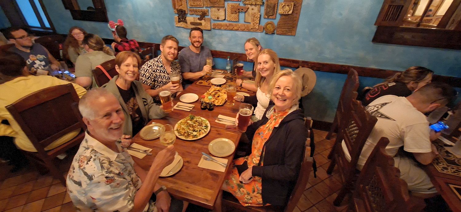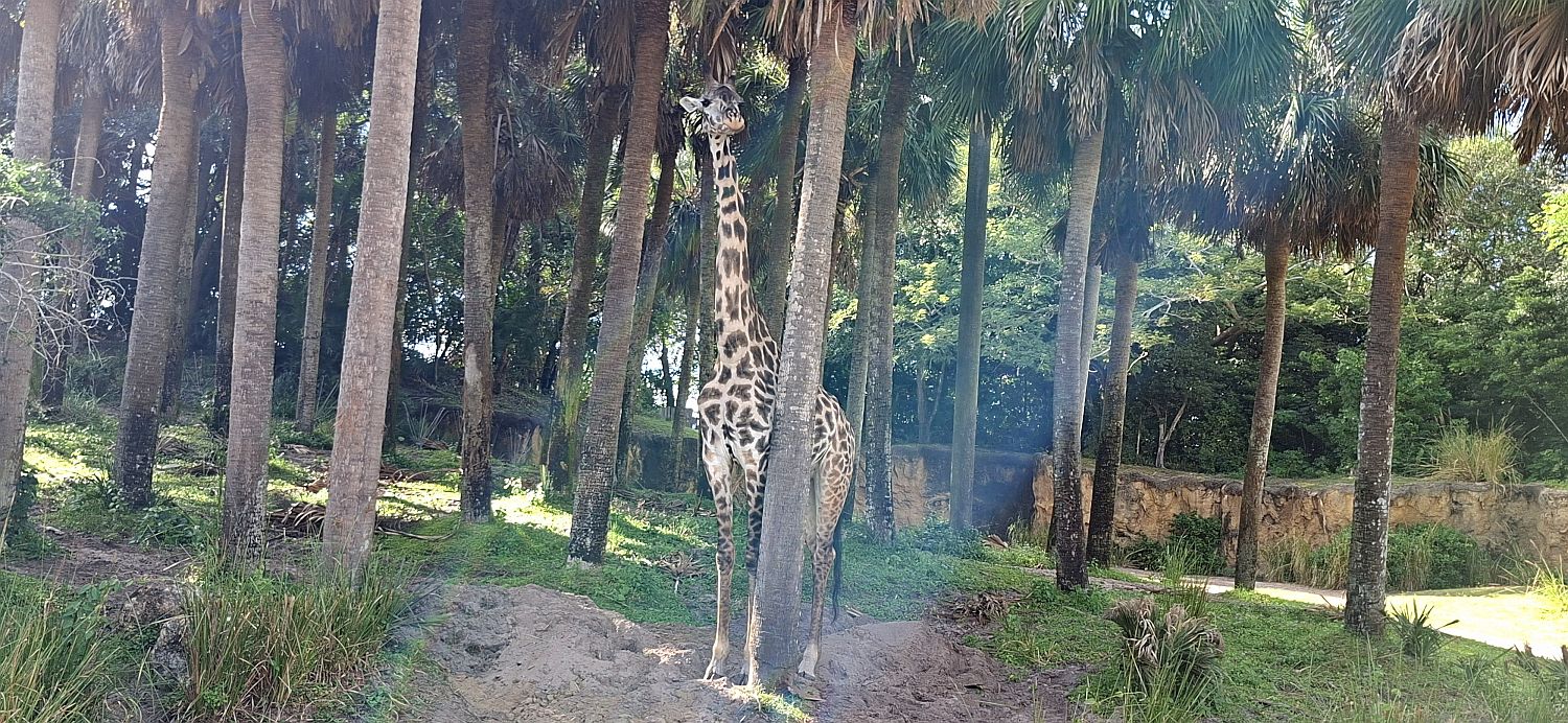Back to the room where Georgia has returned and is happy with her new jacket and even happier with a 20% DVC discount. We have Lays and a beer and get ready to leave as the pressure washing comes closer to our balcony. At 1.30 we get an Uber to the Animal Kingdom where we meet up with Sharon and Evan. We head to Kilimanjaro Safaris, which only has a 15 minute wait. It isn't the best safari we've ever had and it may be my imagination but I think there are less animals than there used to be. We do get to see some rhinocerous up really close and one decides to relieve itself along side the ride vehicle much to the amusement of all on board.