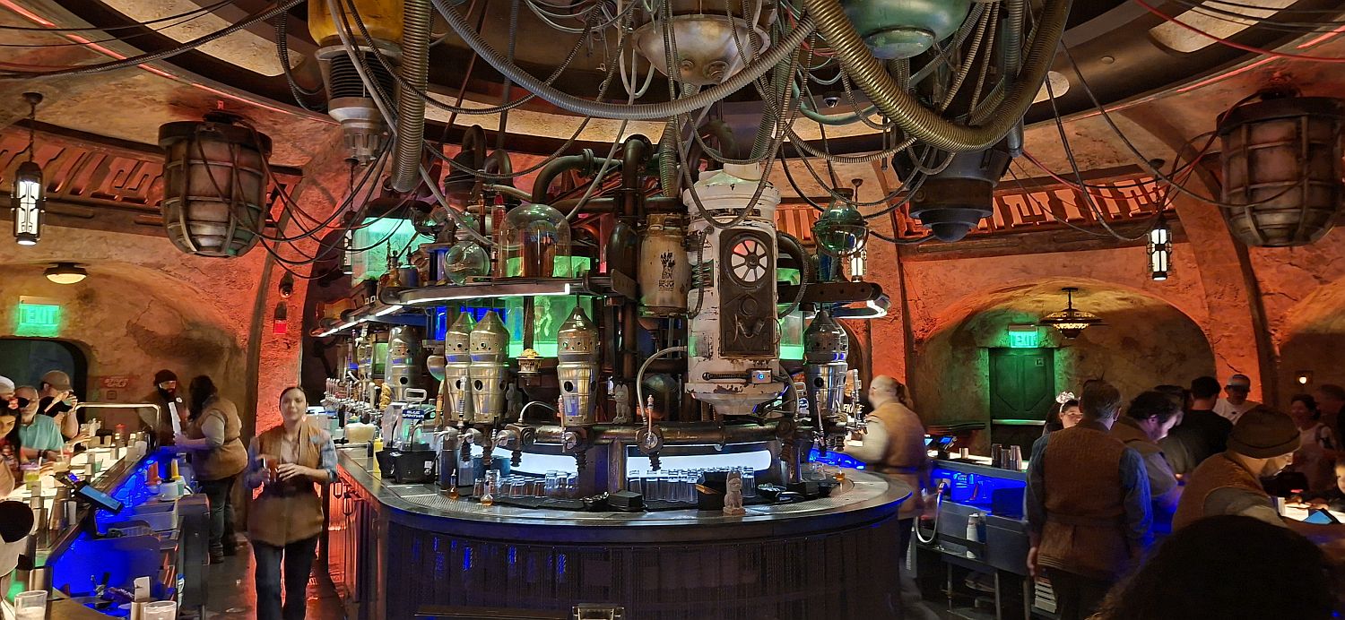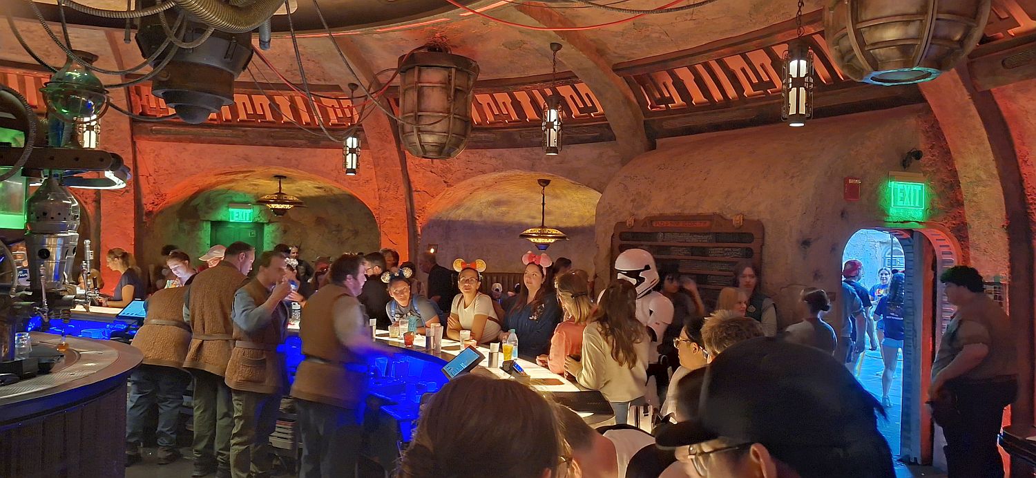 We have a 4.20 pm reservation at Oga's Cantina and we go there next. We enjoy this as much as the first time we did it years ago. There are Stormtroopers mingling around, I wonder how they keep their armour so shiny. One catches me videoing him and walks past shaking his head in disgust.