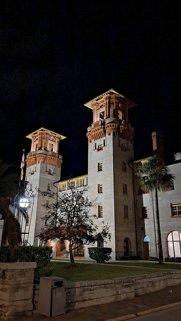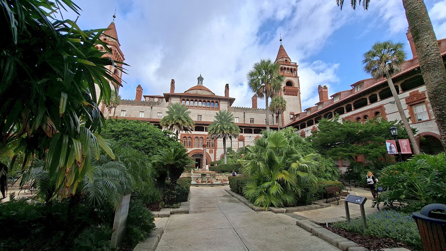 Drive home to drop off the car as we want to explore the city. The sun has now come out and it's quite pleasant. The first stop is Flagler College which is beautiful.