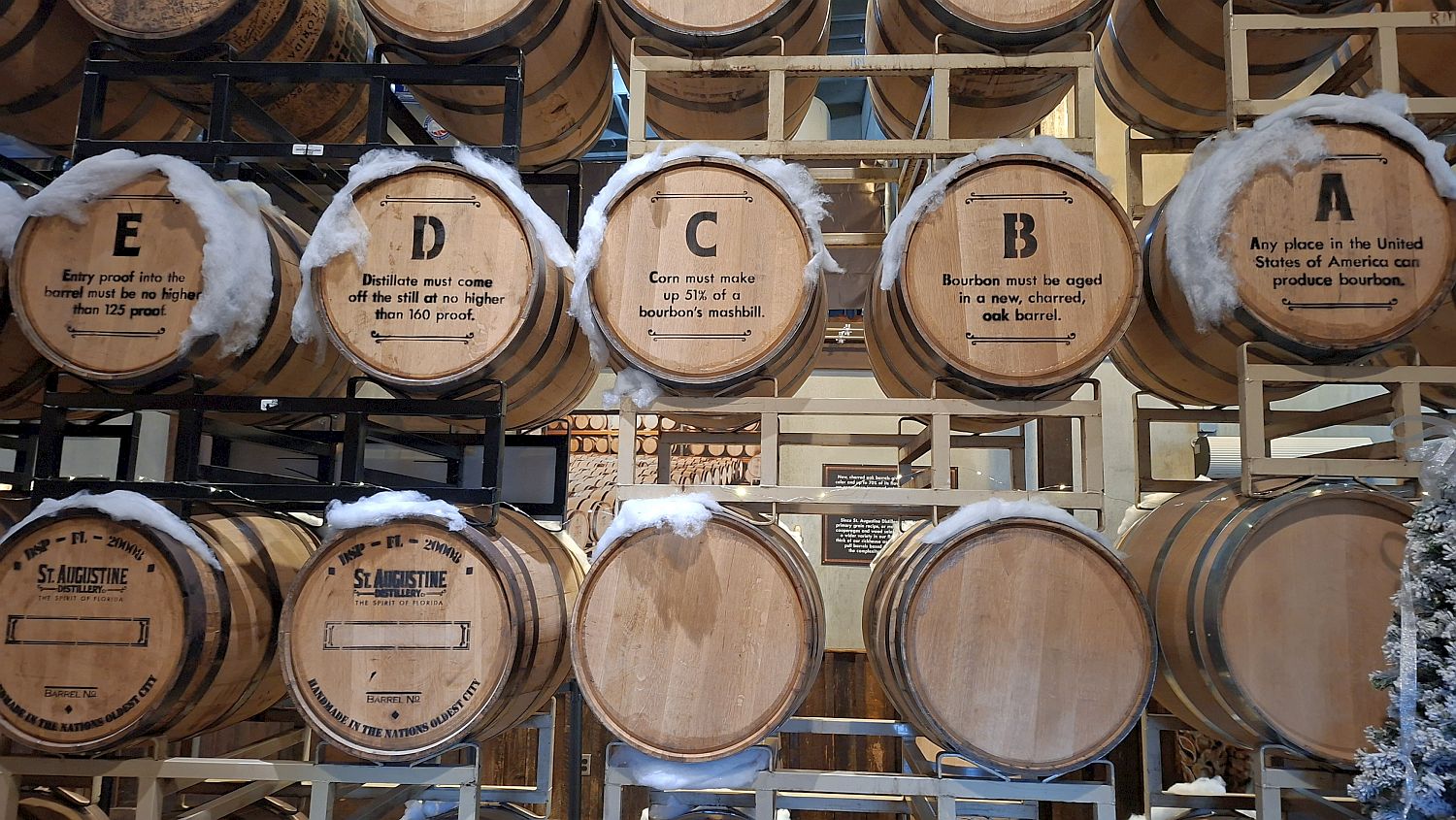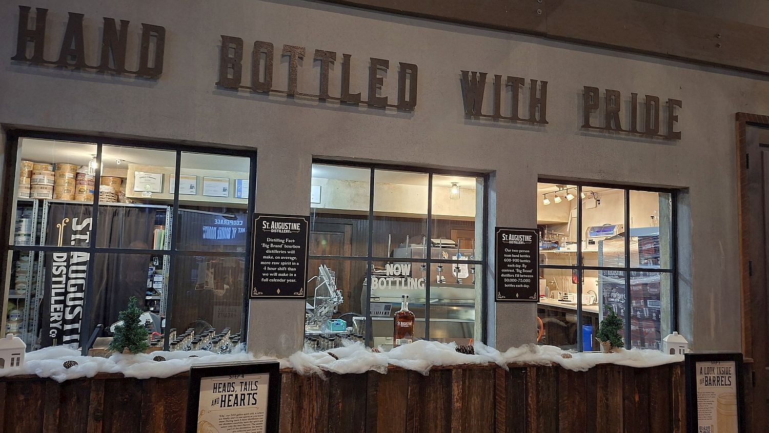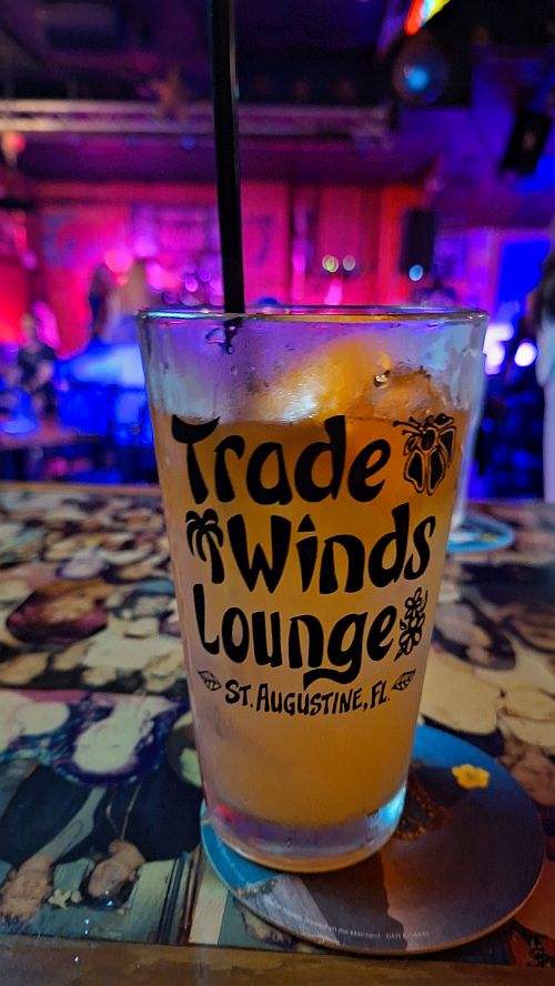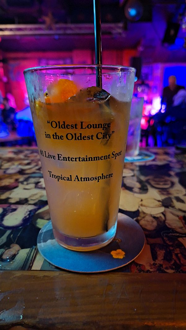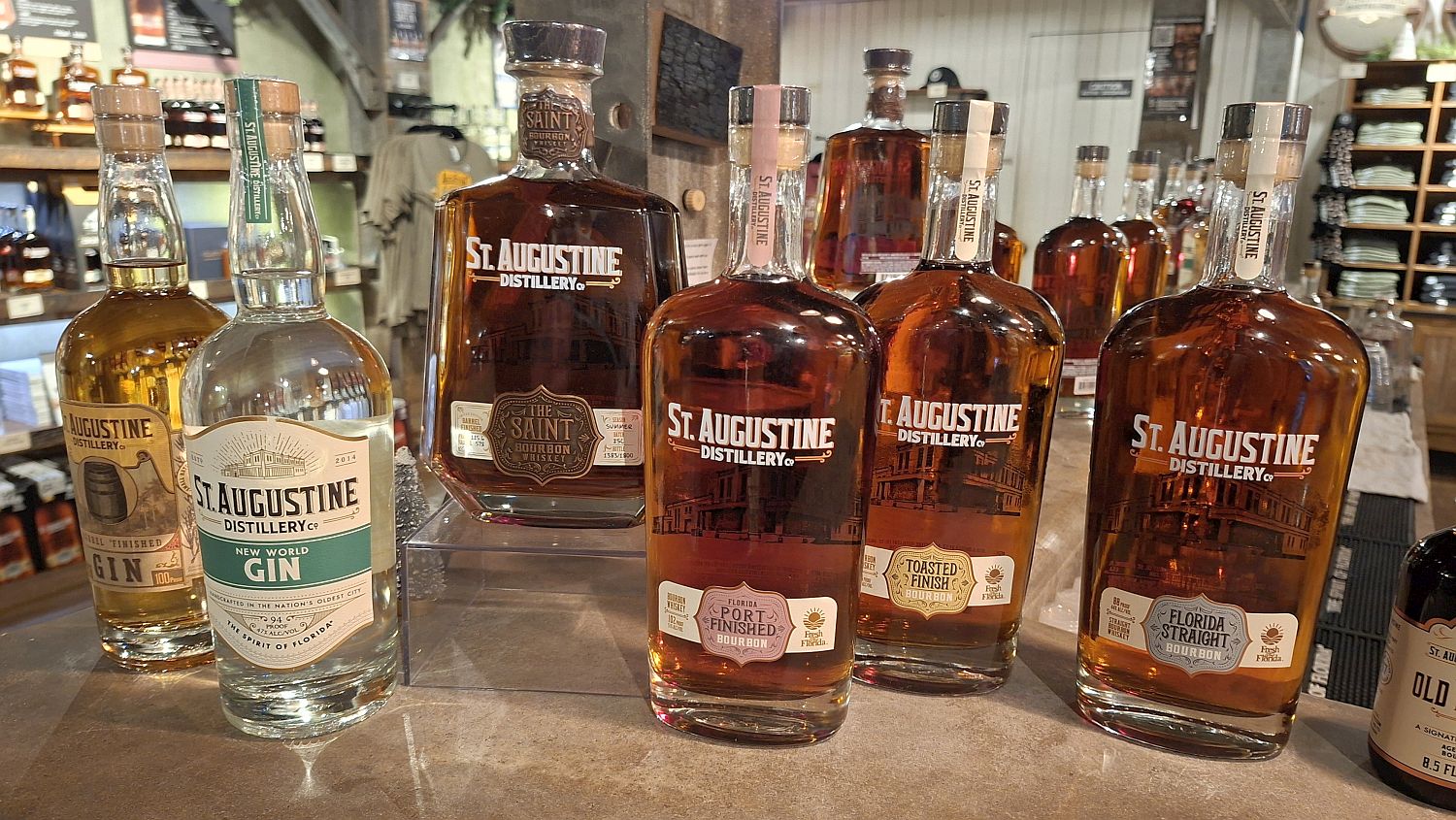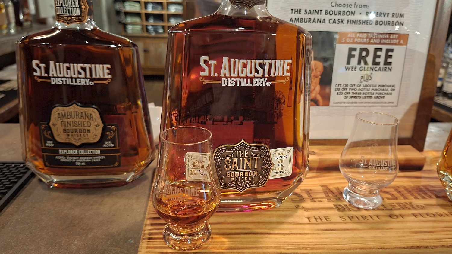 Next stop on our drinks tour is the St Augustine distillery. This is a free self guided walk though the facility with stops to sample tiny cocktails made with the spirits they produce and the mixers that they also make. So we have a vodka, gin, rum and bourbon cocktail. All of which were very tasty. It is fascinating reading about the different chars on the barrels that make the difference to the bourbons. At the end in the shop where you can buy all the spirits and mixers, together with lots of other items, there's the chance to sample neat spirits for free or pay $10 to sample a proper size shot in a cute glass you can keep. Ind and Kev were keen to sample the premium bourbon. I had a sip but it was a bit strong for me. I tried the oaked gin as well, which was very unusual. India decides to buy a bottle of bourbon for later in the holiday. The lady who served Ind kindly gave her 3 sample sized bottles of the old fashioned mixer for free.