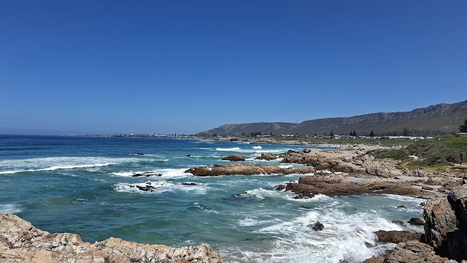 We walk into Hermanus where there are a few people at the old harbour looking out to sea. We soon find out why as we spot a whale some way off shore. It's not the mammoth Southern Right whales that are frequent in September/October but the smaller Bryde's whales. Still, it's a wonderful thing to see.