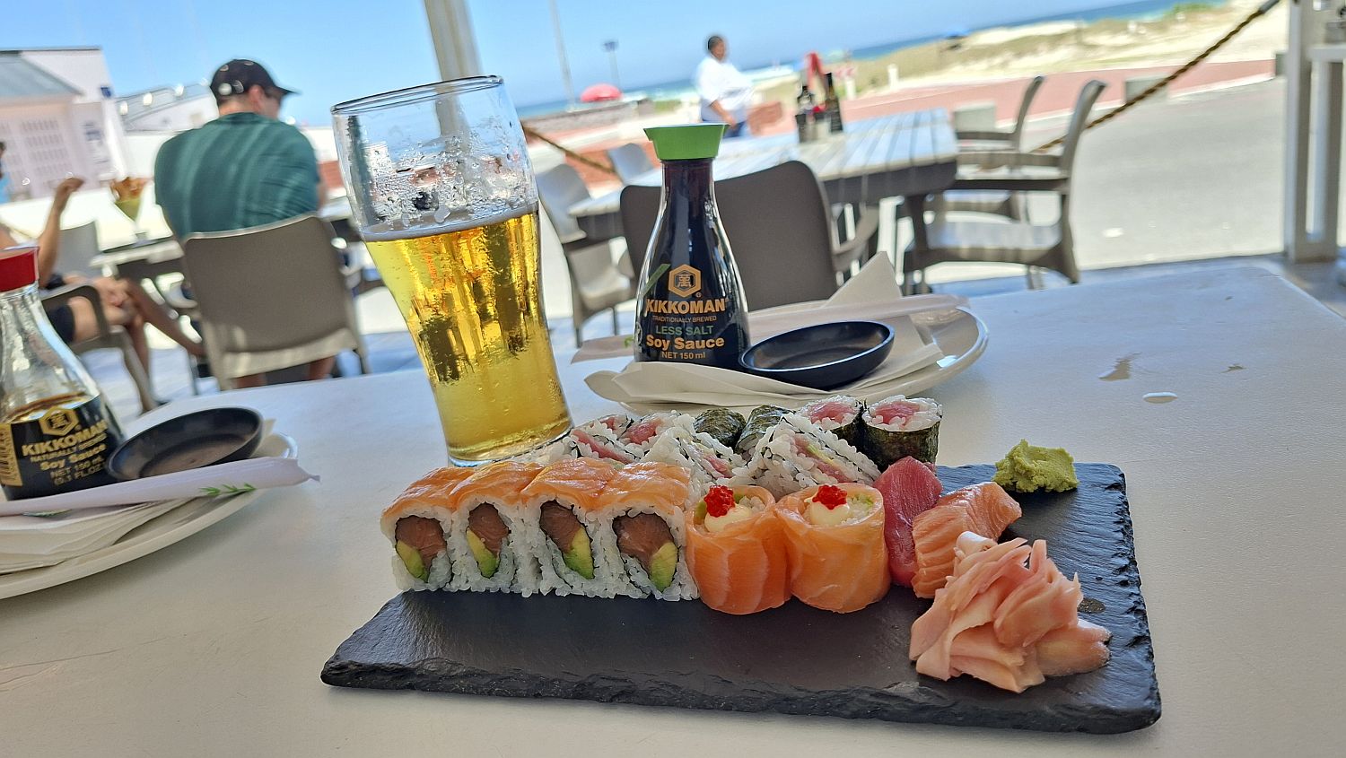 At the end of the walk we stop for lunch at Dutchie's Restaurant where we share the 18 piece sushi platter, 2 large beers and a large bottle of water to take away. The sushi is lovely and the setting very nice. Total is £23. After, we get an Uber back for £5.