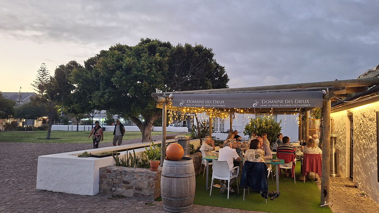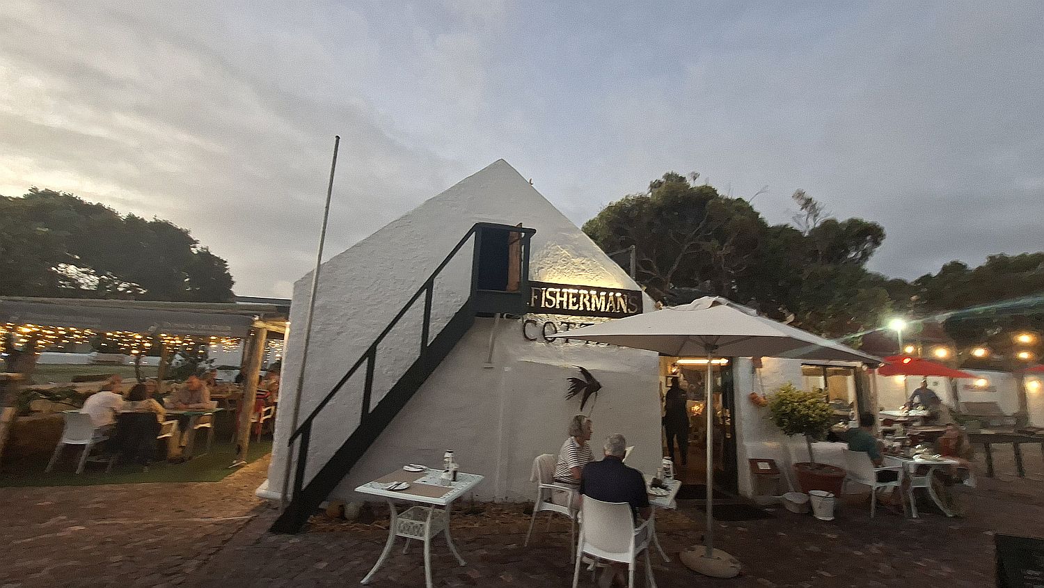After a drink in a wine bar we go to the Fisherman's Cottage restaurant. Unfortunately the young server forgets to put our order in and so we have to wait for an hour for our meal. Tam has sole with garlic butter sauce and I have the line fish.