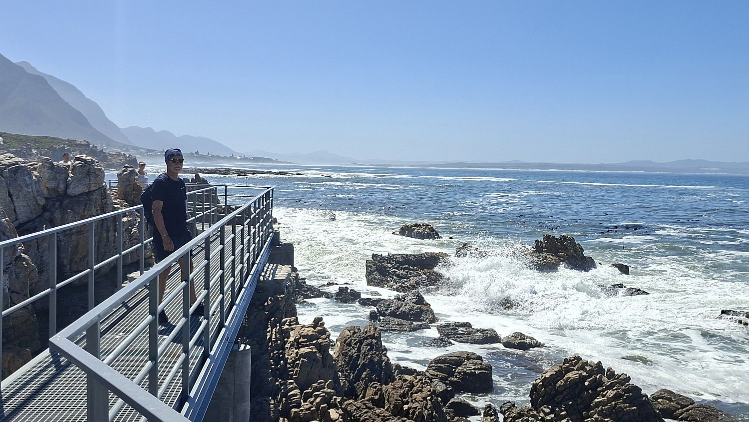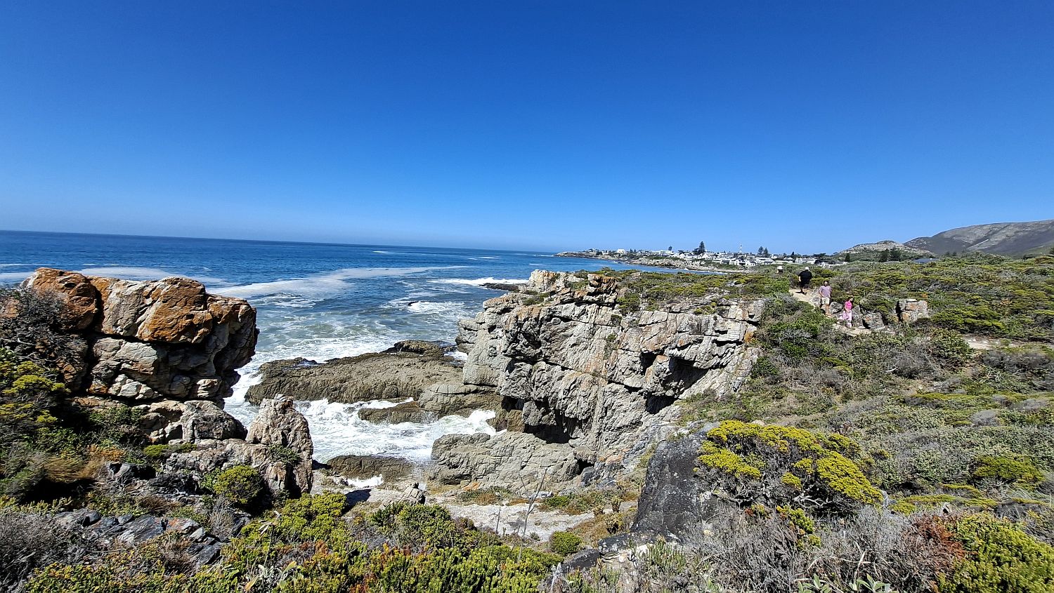 Our plan today is to walk the cliff path from Hermanus to Grotto Beach, a distance of some 6 miles. As soon as we set off Tam finds that the sole of her walking boot is flapping around and we have to go back so she can change into trainers. Just as well that didn't happen half way up Lions Head.
