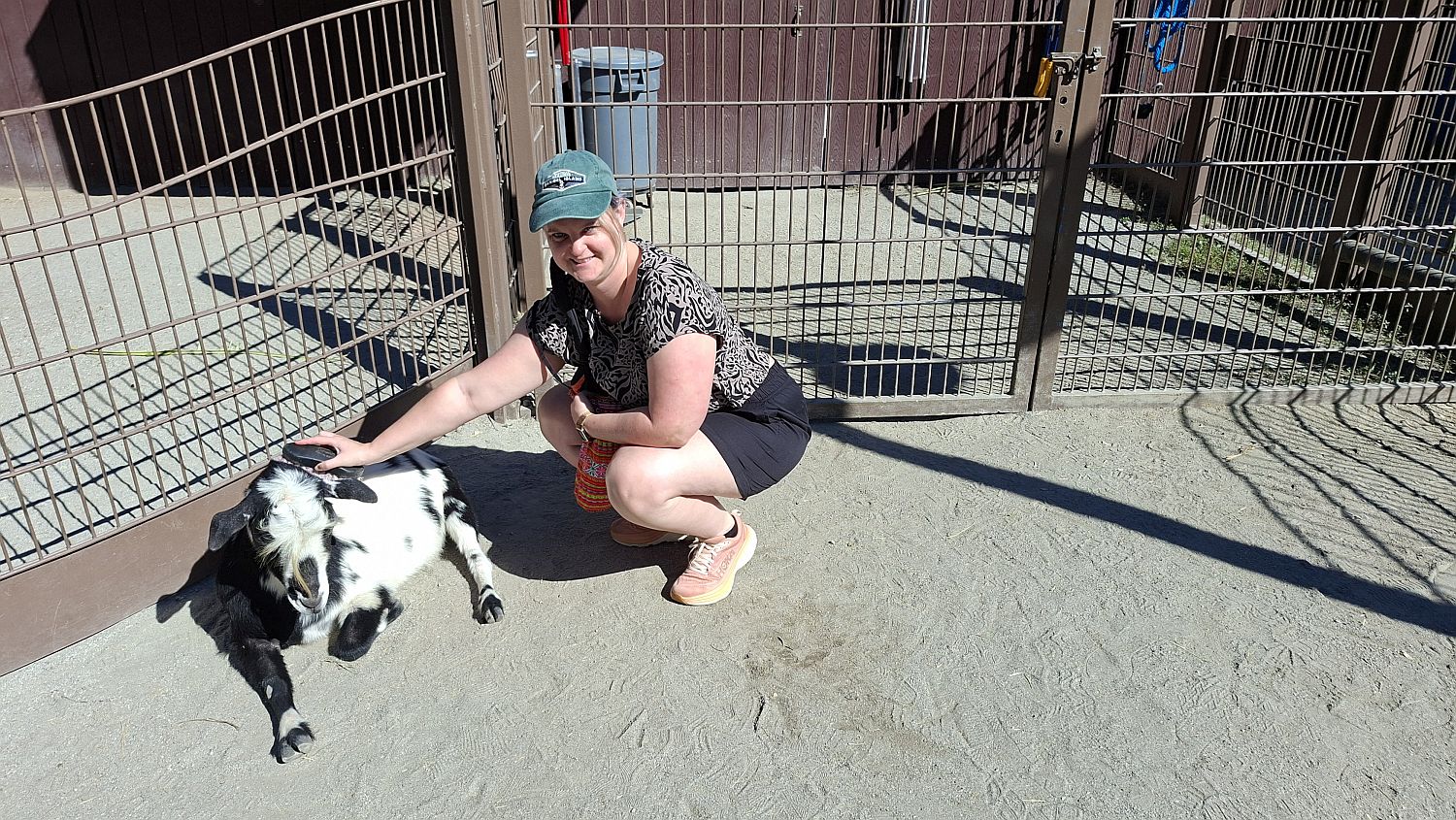 After looking at the tanks of spiders, snakes and toads we go into the petting area where there are goats, pigs and donkeys. It's a lot of fun as you get a brush to give the goats a sprucing up. They seem to enjoy it a lot. I believe Tam would lie down there for hours if someone would brush her hair.