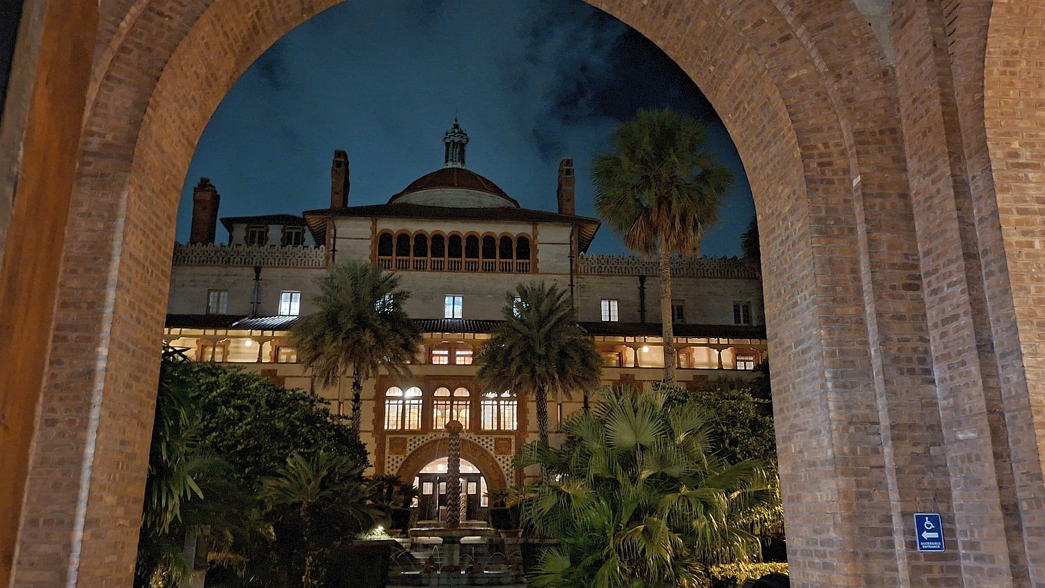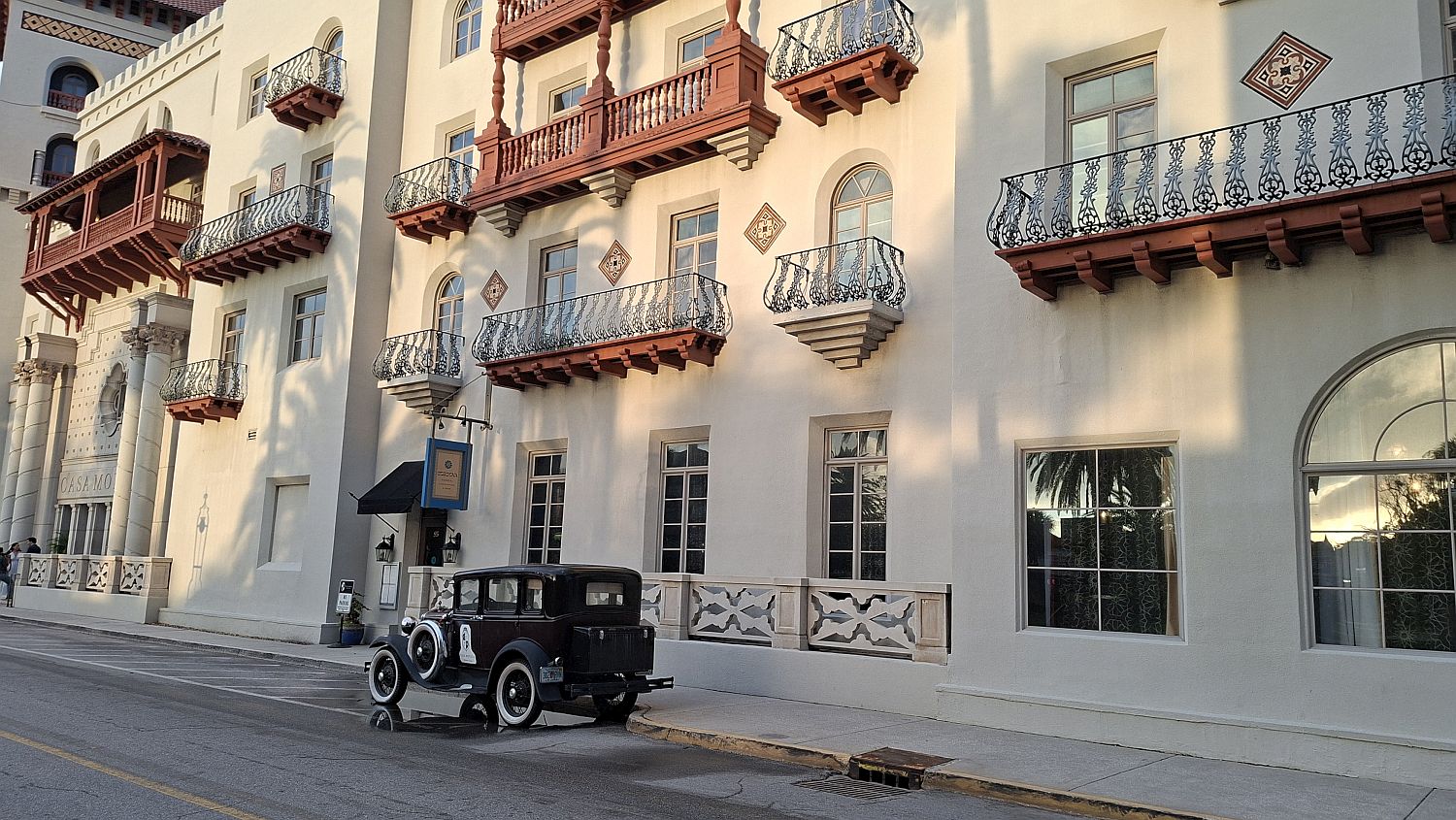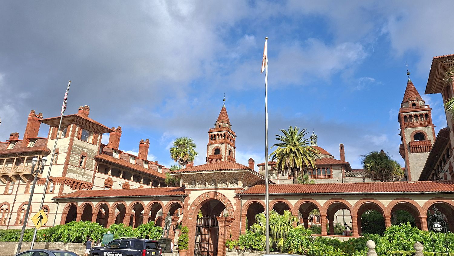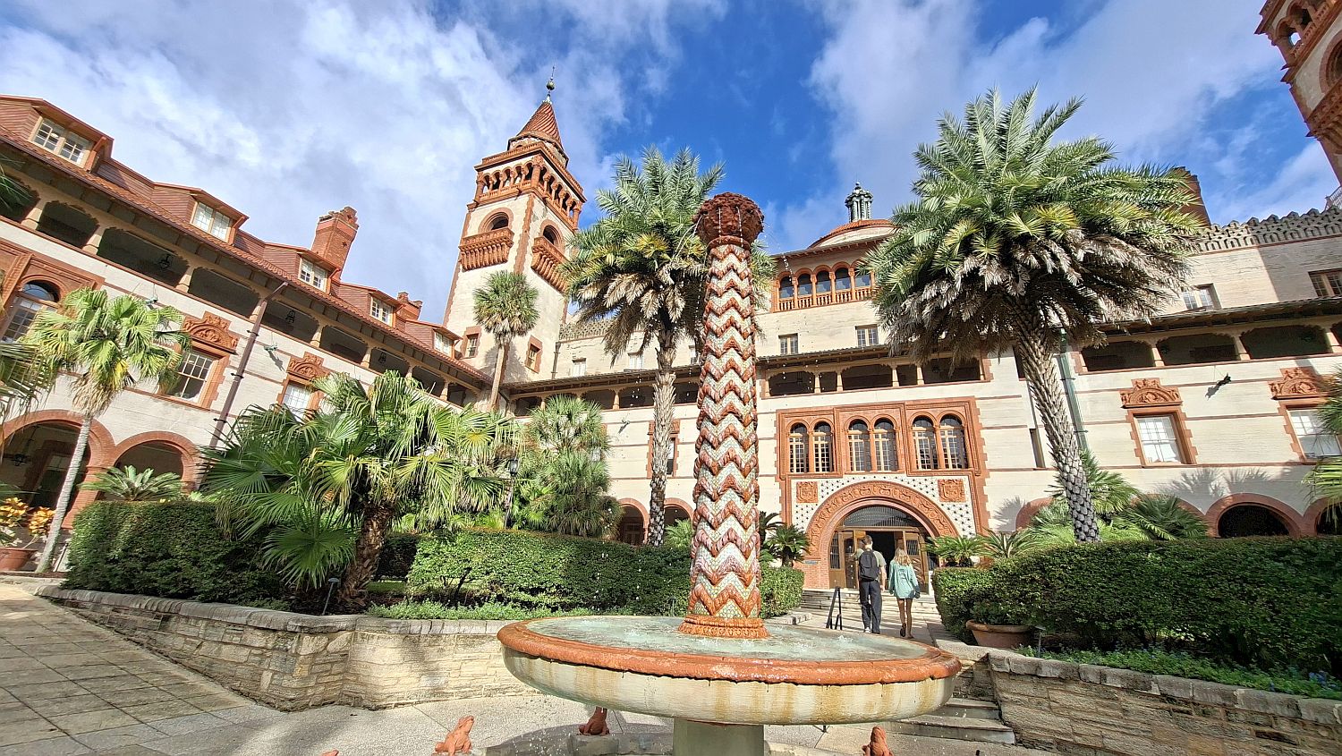 Drive home to drop off the car as we want to explore the city. The sun has now come out and it's quite pleasant. The first stop is Flagler College which is beautiful.