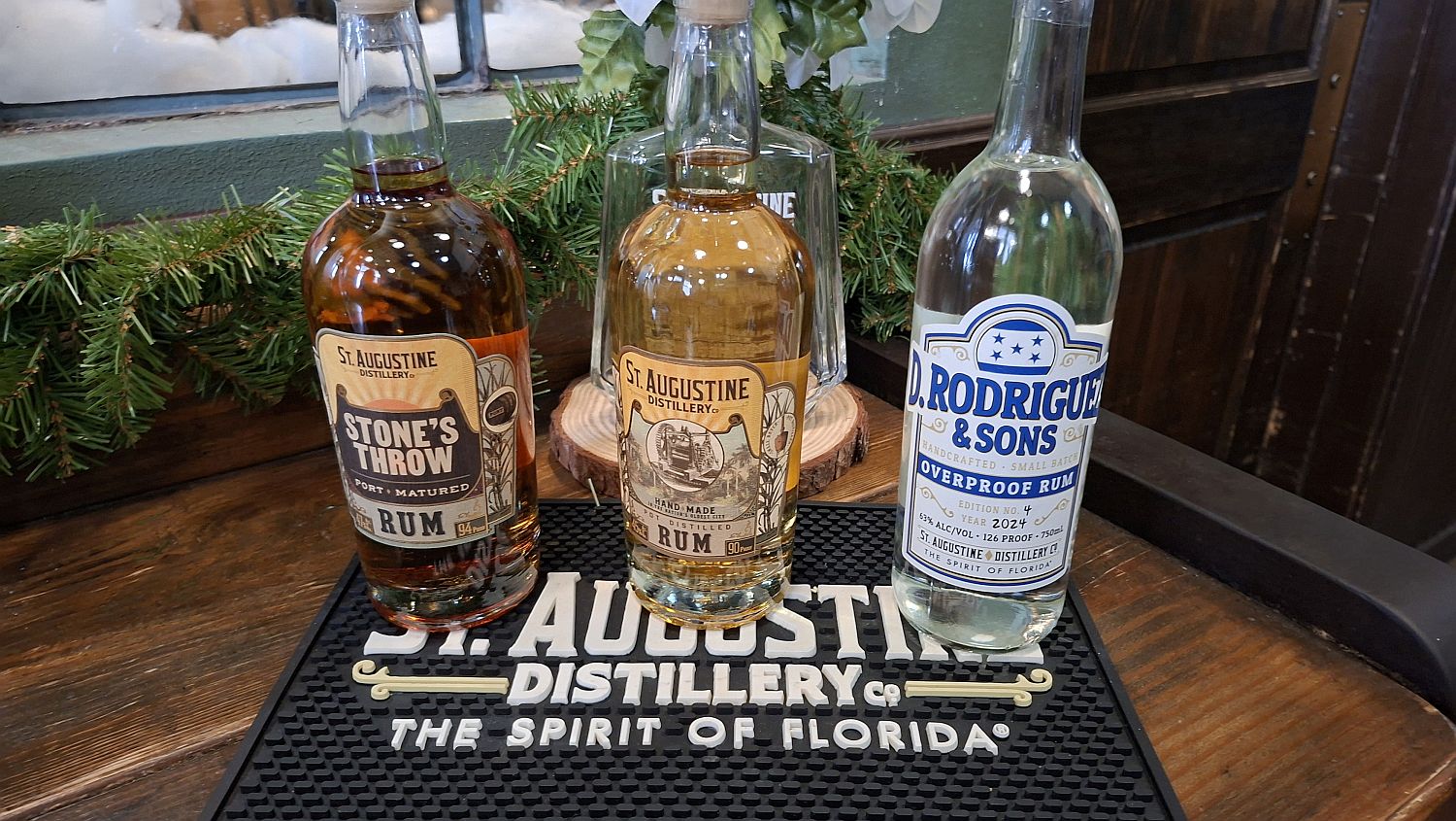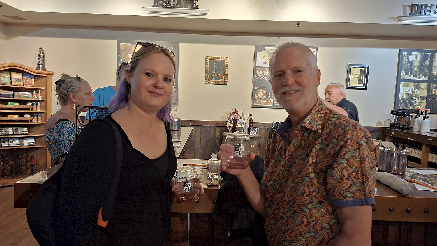 Next stop on our drinks tour is the St Augustine distillery. This is a free self guided walk though the facility with stops to sample tiny cocktails made with the spirits they produce and the mixers that they also make. So we have a vodka, gin, rum and bourbon cocktail. All of which were very tasty. It is fascinating reading about the different chars on the barrels that make the difference to the bourbons. At the end in the shop where you can buy all the spirits and mixers, together with lots of other items, there's the chance to sample neat spirits for free or pay $10 to sample a proper size shot in a cute glass you can keep. Ind and Kev were keen to sample the premium bourbon. I had a sip but it was a bit strong for me. I tried the oaked gin as well, which was very unusual. India decides to buy a bottle of bourbon for later in the holiday. The lady who served Ind kindly gave her 3 sample sized bottles of the old fashioned mixer for free.