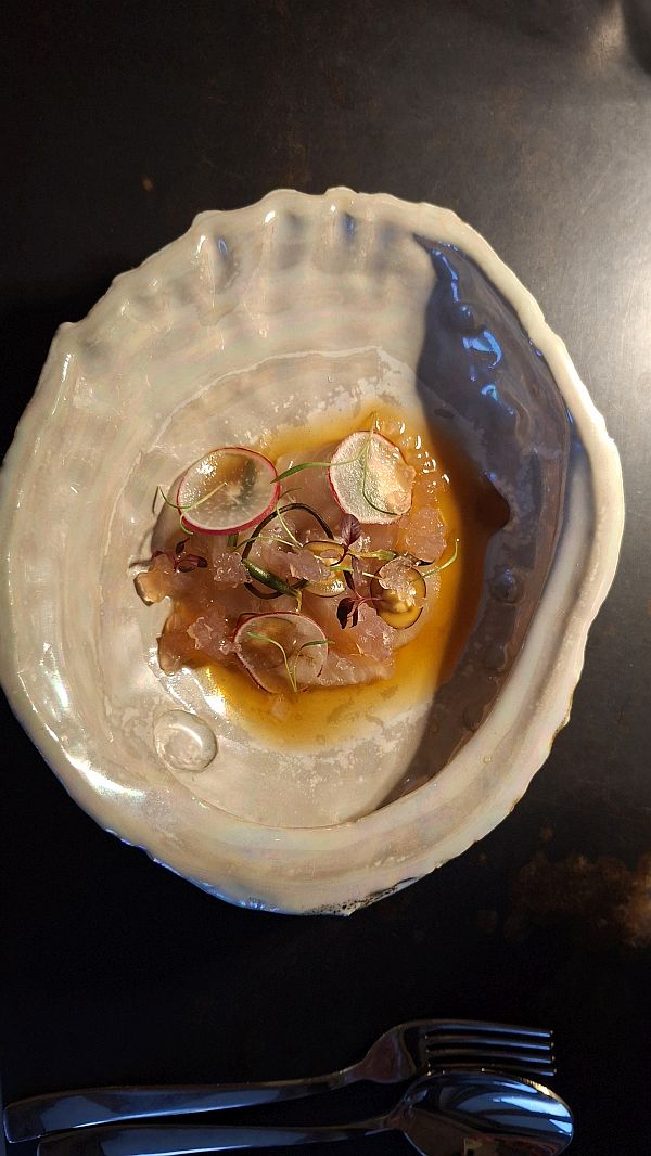 Head over the road to Terrarium and climb up the steps to the Victoria Hotel (not to be confused with the V&A Hotel) where the restaurant is situated. It's a lovely dining room with views over table mountain but unfortunately also views over some industrial type roofs. We go for the Fauna tasting menu ie meat, not Flora which is the plant based tasting menu. There are 8 courses and we go for the wine pairings as well. Our waitress is lovely and ask about the pace etc and gave us info on each course and wine. The cost is around £80 per person before gratuity. The food is lovely apart from a couple of courses that we find a little over seasoned.